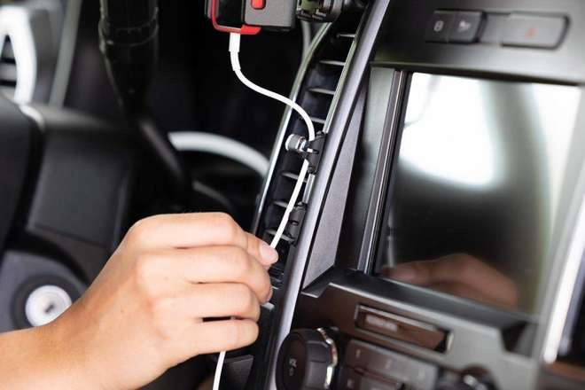 Uchwyt uniwersalny regulowany do smartfonów bez futerału oraz w futerale lub etui o wymiarach: 75-89 mm (szer.), 9-13 mm (grubość) z wbudowanym kablem USB-C oraz ładowarką samochodową
